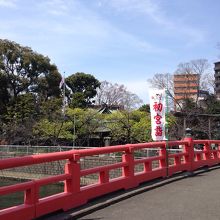 目黒川に掛かる赤い橋が目印。この橋から荏原神社を望む風景は『しながわ百景』にも指定されていて 確かに素敵です。