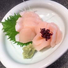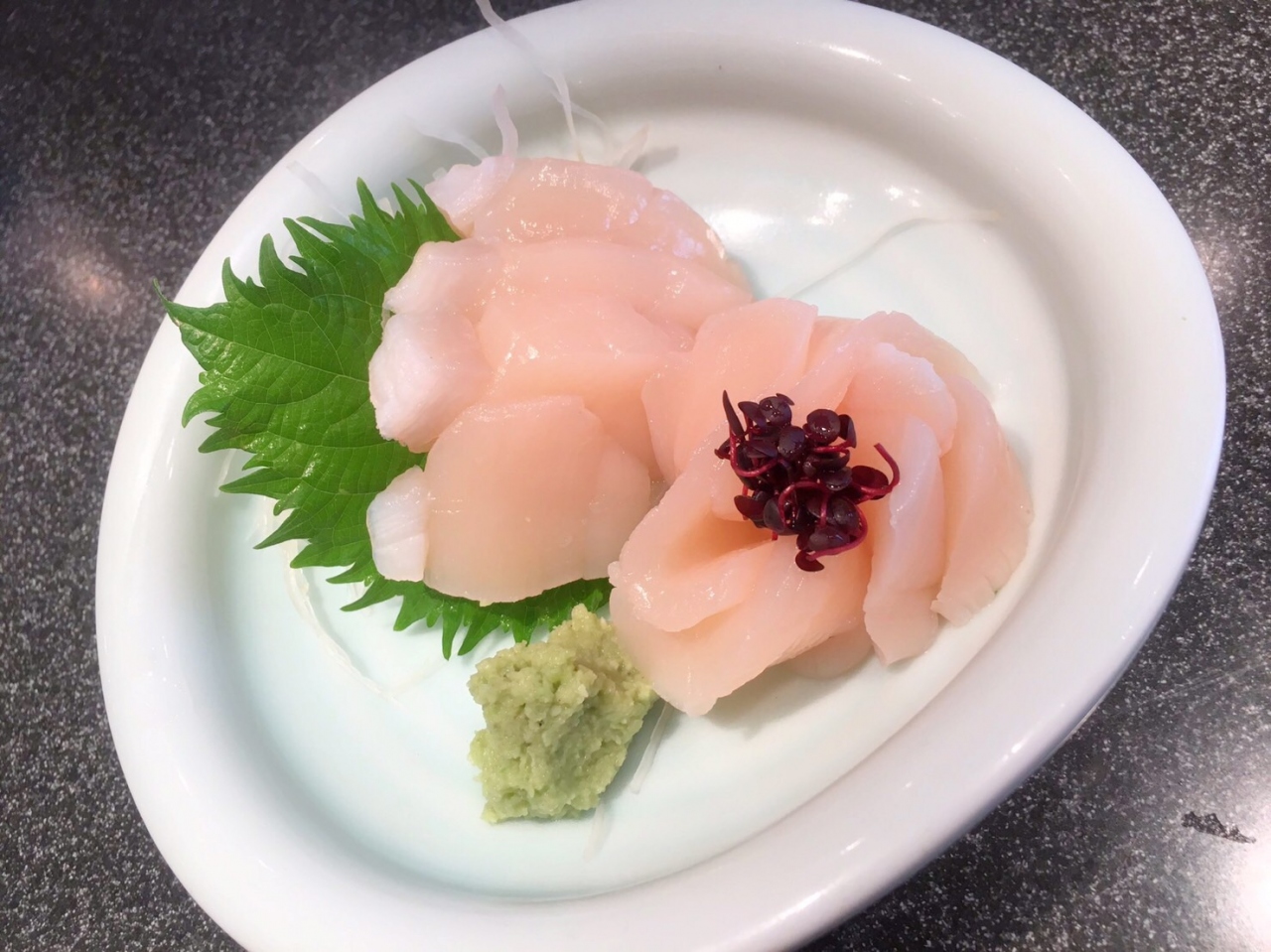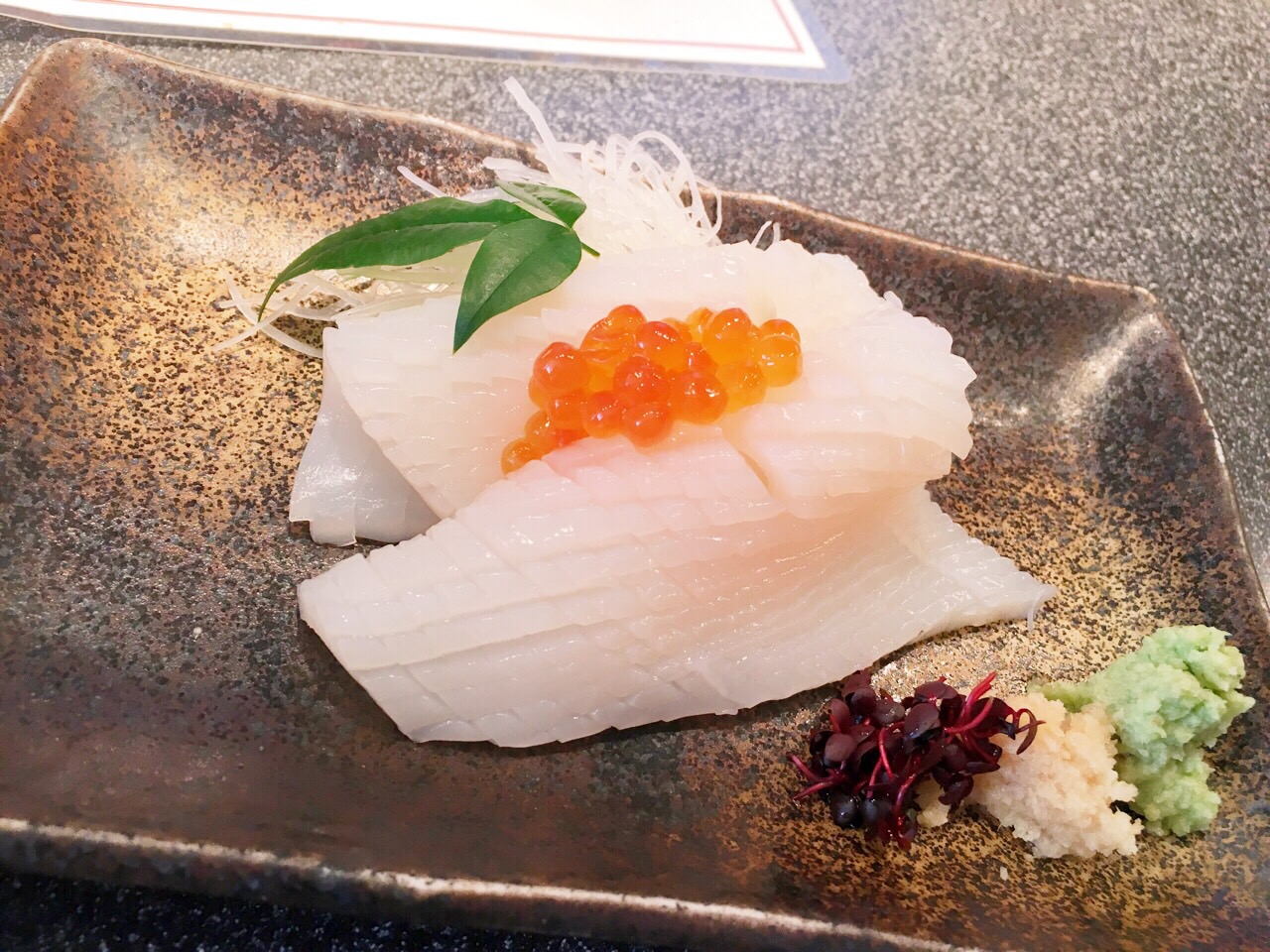 特上にぎりと御造り単品を2品注文。ホタテとイカの造り・・・旨い。