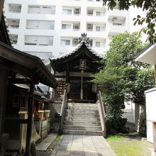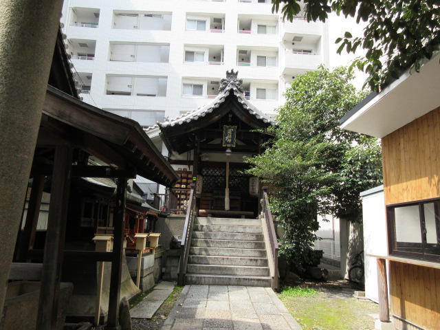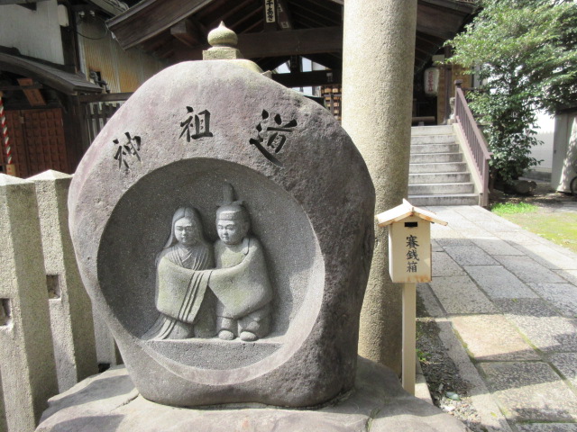 京都駅から塩小路通りをリーガロイヤル京都方面へ、堀川通りとの大きな交差点の一つ手前の小道を左折すると、道祖神社、不動堂と仲良く並んでいます。その奥はコンビニのセブンイレブンがあり、アパホテル京都駅堀川通、へと続きます。この神社の前には夫婦の石像が可愛い姿。夫婦の神様です。