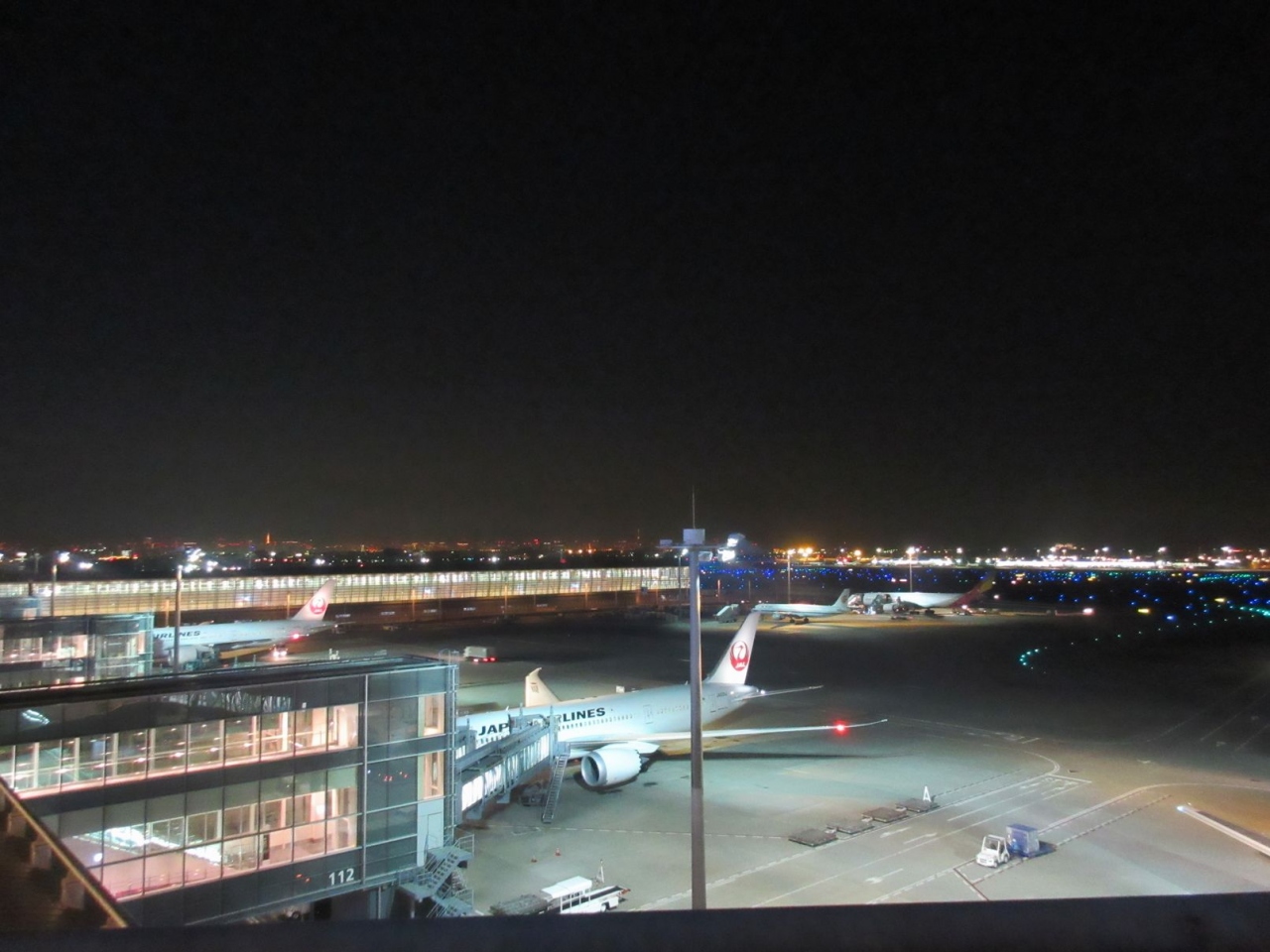 ロサンゼルスに向けて深夜便で飛び立つ前に展望デッキに出てみました。真っ暗な空の下に煌々と灯るあかり、果てしない滑走路、離発着する飛行機。夜の空港を見ていると、ライトがロマンチックでもあり、海外に旅立つ興奮が倍増します。フライト前に展望デッキに立つことをお勧めします。