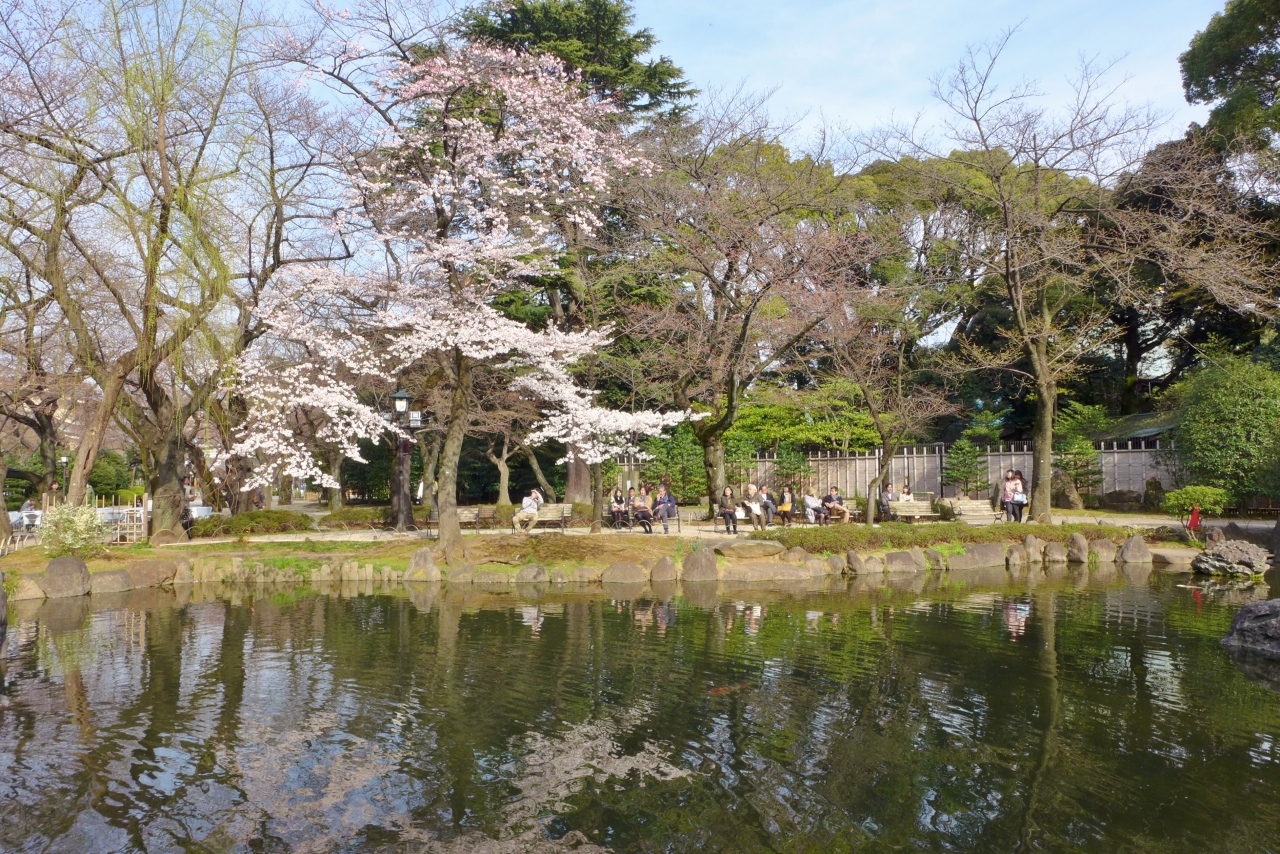 大きな鯉が泳ぐ池の畔に早咲きの桜が咲いていました。ベンチもありますので静かにひと時を過ごすことができました。靖国神社の穴場かもしれません。