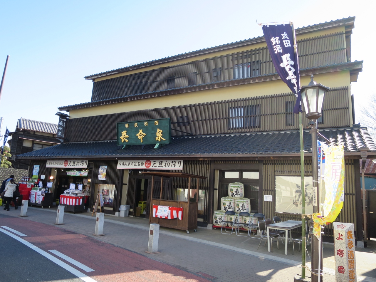 成田山新勝寺の参道沿いにお店があります。酒蔵もお店の横にあります。(酒樽もおいてありましたよ!)