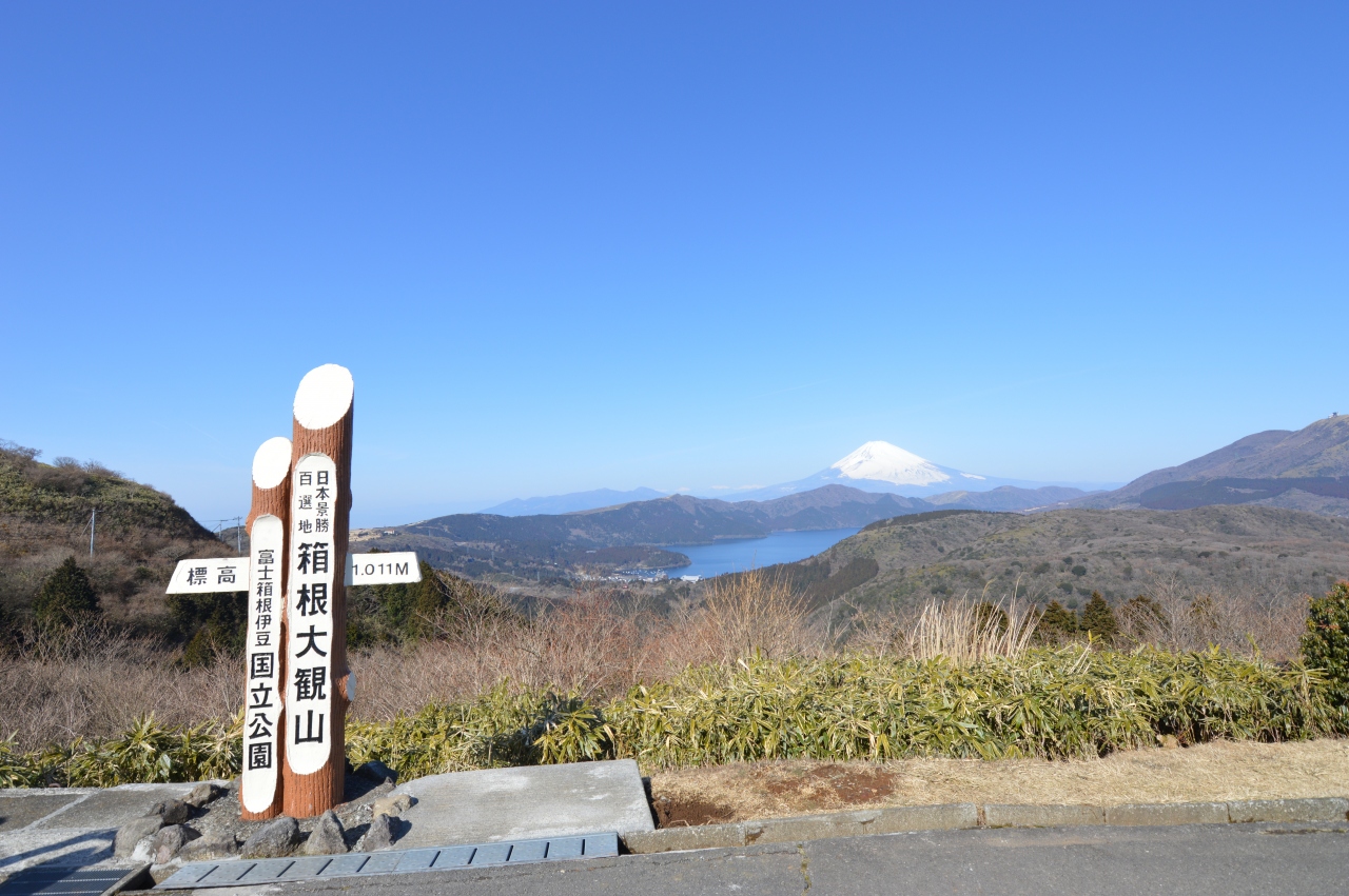 小田原からマツダターンパイク箱根を通って終点付近にある絶景スポットです。標高1,011mの大観山の頂上で、ここからは芦ノ湖と富士山を眺める事が出来ます。冬は空気が澄んでいるのでとてもきれいな富士山を見る事が出来ます。