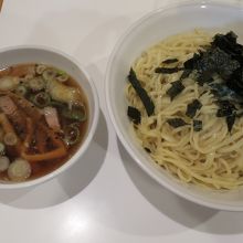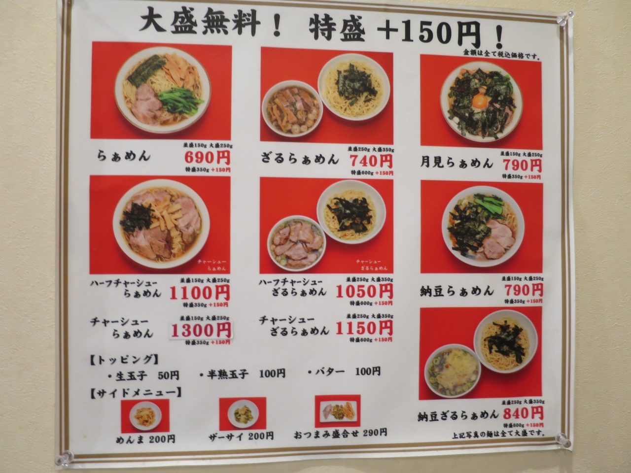新橋駅烏森口から徒歩3分程のラーメン激戦区 新橋西口通りにあるラーメン店です。本店が新宿にあり、新橋店は唯一の支店。この店には食べたことがないざるラーメンを食べに行きました。注文したのは特盛600g。つけ麺と同じなのかと思いきや、濃いめのラーメン汁にネギ、チャーシュー、メンマが入っていて、ツルツルの麺をつけて食べると、まさにざるラーメン。つけ麺とは全然違いました。