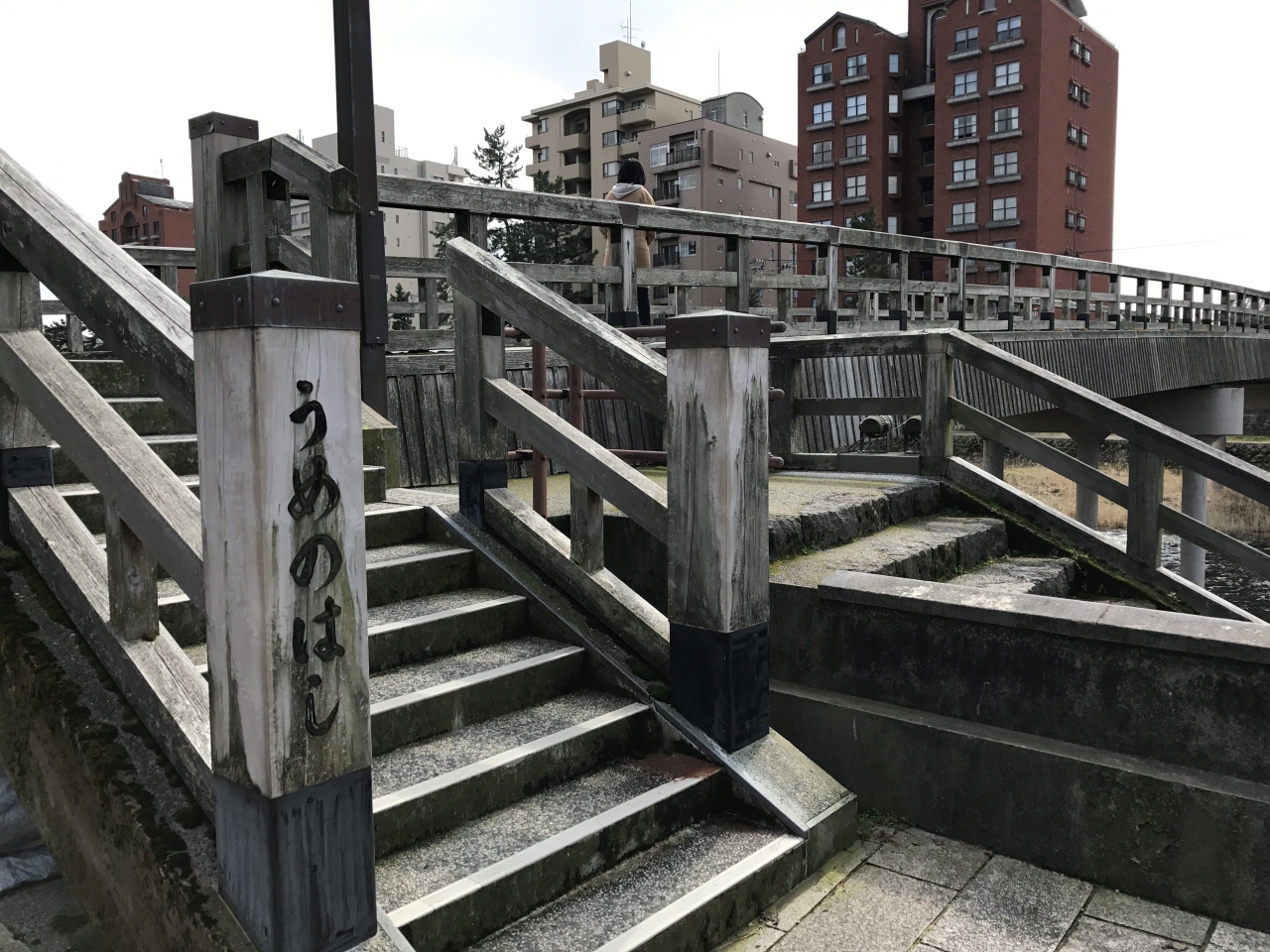 ひがし茶屋街から少し離れたところにある、浅野川にかかる木の橋です。江戸時代を思わせる風情が良かったです。歩行者専用でもありました。近くに徳田秋聲の記念館があるので、そこと合わせて見学すると効率的に回れるかと思います。