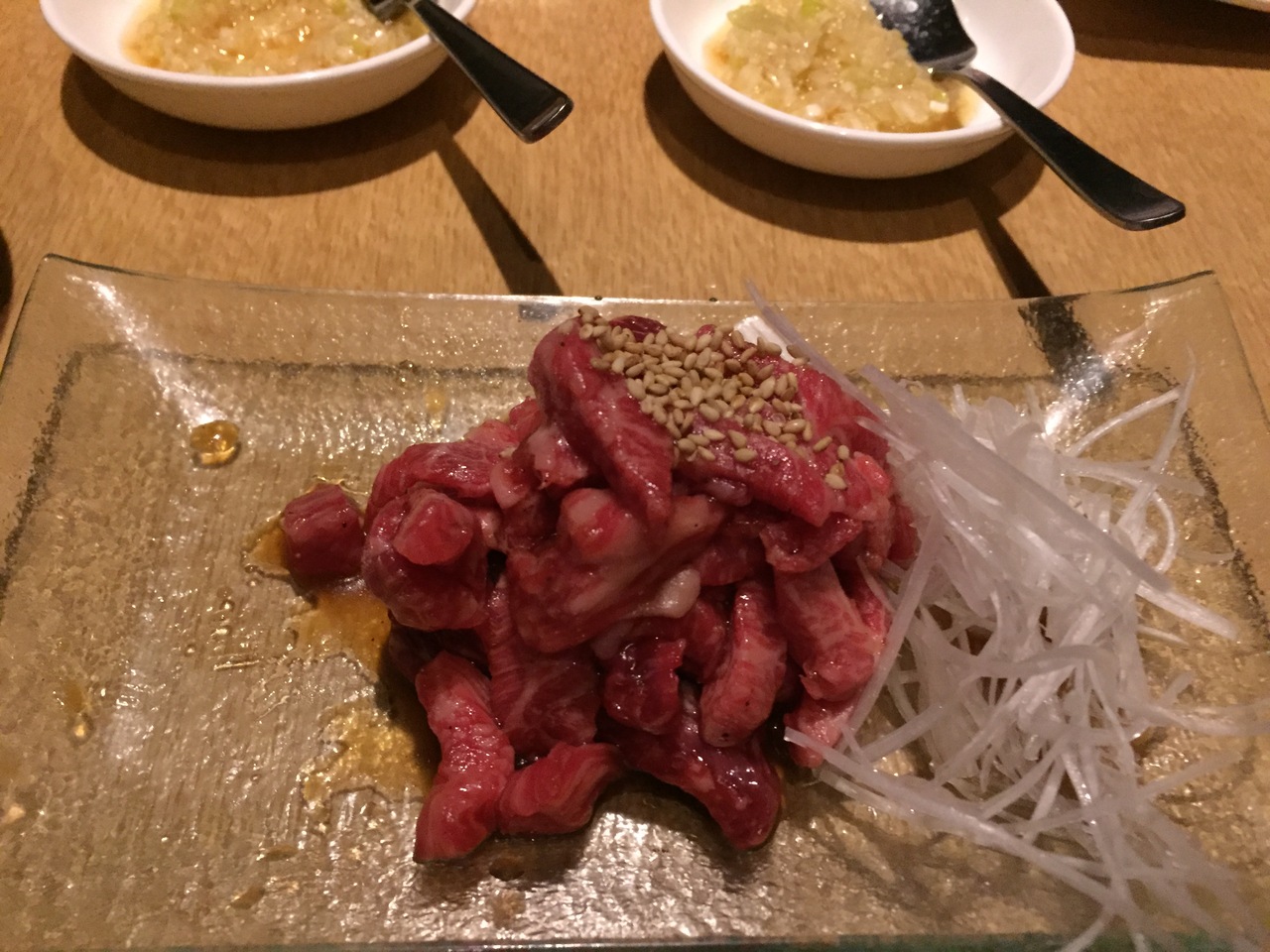 銀座1丁目に昨年できた新しいビルの中のガブリビーフ天さんへ。角部屋?個室でとても雰囲気が良かったです。新しいので店内もピカピカで清潔でした。炙りユッケは 自分で少しだけ炙り温泉卵に絡めて食べます。他のお肉も美味しく、スタッフの方が個室なのに ドリンクのお代わりなどこまめに聞いて下さり 気持ちよく食事する事が出来ました。