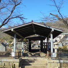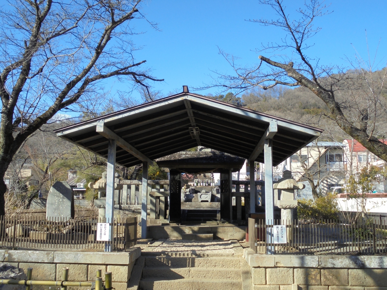 墓所内には山梨県指定天然記念物のヤツブサウメがあり訪れたときにちょうど花を咲かせていました(3月下旬に満開となるようです)。