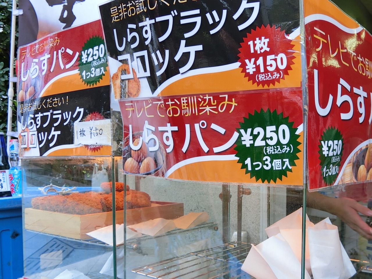 混んでいて、レストランの方には入らなかったのですが、お店の前で売られているしらすパンを購入しました。