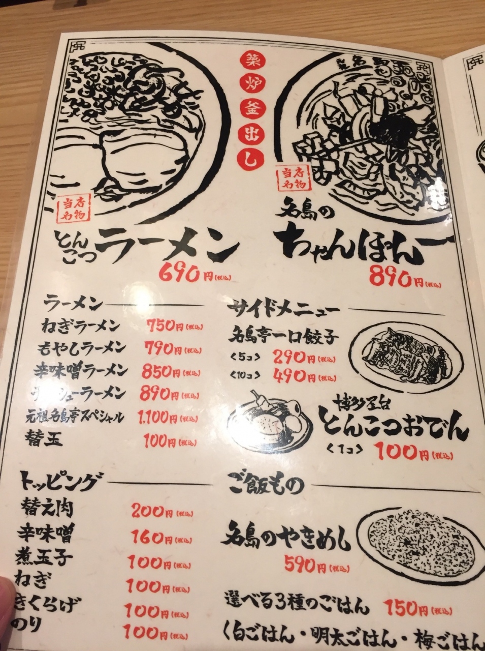 名島亭は、JP博多ビルの駅から三百歩横丁にあるラーメン店です。九州ラーメン総選挙で優勝したことのある長浜ラーメンの有名店です。博多駅から地下で直ぐなので、福岡旅行の最終日に立ち寄りました。正直いうと、期待の割には普通の味でした。麺とスープが絡んでいない印象でした。