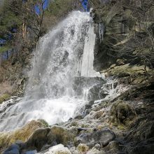 瀧の横から眺めるような形になるので、迫力があります。その先は傾斜も強くなり、冬場は凍結しているので、普通の靴では行けません。この滝を正面から見ることができるのは夏季だけのようです。