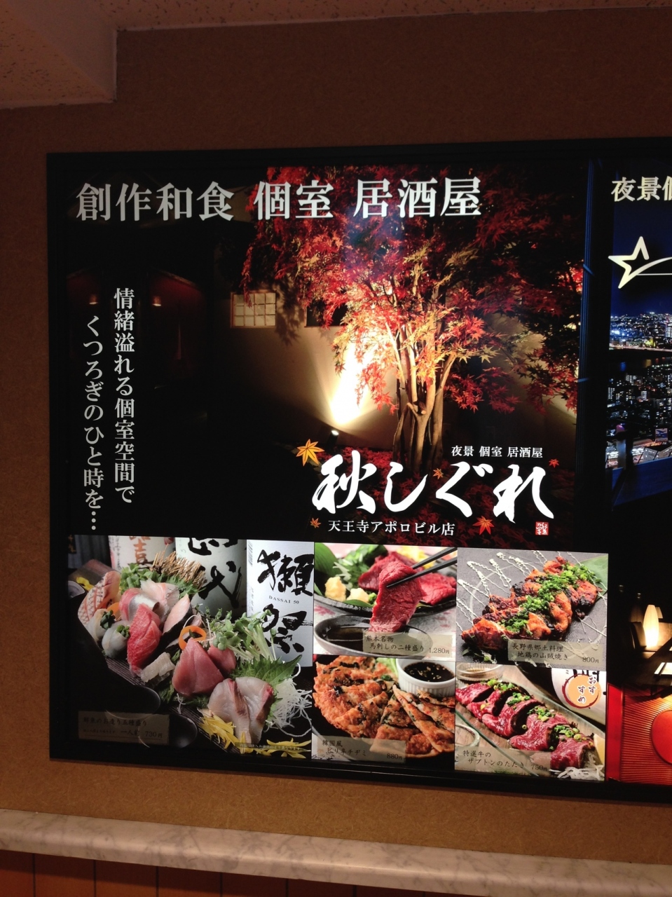 個室を売りにしていますが、完全個室ではなく、一面だけは半分暖簾区切りになっていますのでいわゆる密室感はありません。夜景はご多聞にもれず綺麗ですが見れる席は限られているので
