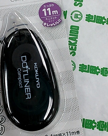 新宿駅西口にある世界堂に行きました。一棟まるまる文房具屋さんです。文房具が好きなので、世界堂にいくと一日過ごせるのでは!?ともおもいます。文房具もどんどんあたらしいものが出てくるので久しぶりに行くと本当にあっという間に時間が過ぎていきます。今回購入したテープ糊も新しいデザインになっていました。これまでもコクヨのドットライナーを中身を買い直して使い続けてしましたが、いよいよ壊れてしまい新しいものを探しに行きました。他社のにしようか、同じのにしようか、両面テープにしようかと商品棚の前で迷っていたところでこのデザインを見つけて即決しました。いつも新しい発見のある文房具屋さんです。