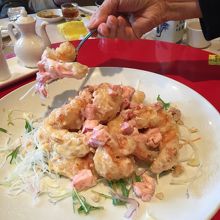 いちごの甘酸っぱさが、こってりしたエビマヨにマッチしていた。
