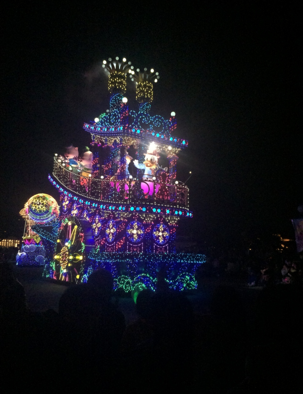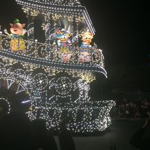 ディズニーランドの定番のパレードです。これは絶対に見たほうが良いです。とても綺麗で迫力があります。子ども連れだったので、帰りのことを考えると、パレードを見るか迷いましたが、やはり見てよかったです。ミッキーが最初に来ます。