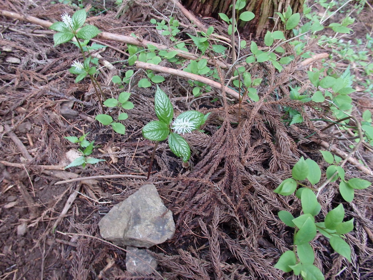 本命のヒカゲツツジとイワウチワを見に坪山にのぼりました。しかし4年前に比べ、イワウチワは1輪のみ、ヒカゲツツジは質量とも劣っていました。残念でしたが本命はダメでした。その代り他の野花ニリンソウ、マルバスミレ、タチツボスミレ、カキドウシ、ミツバツツジ、ヤマサクラ、モモ、チゴユリ、ヒトリシズカ、イカリソウ、ミツバツチグリ、ヒゴスミレ、イカリソウ、ミヤマシキミ、ヤマブキ、ケマン、イワカガミ、ヤマザクラ、マムシグサ等20種位の花見られて、落胆を充分カバーしてくれました