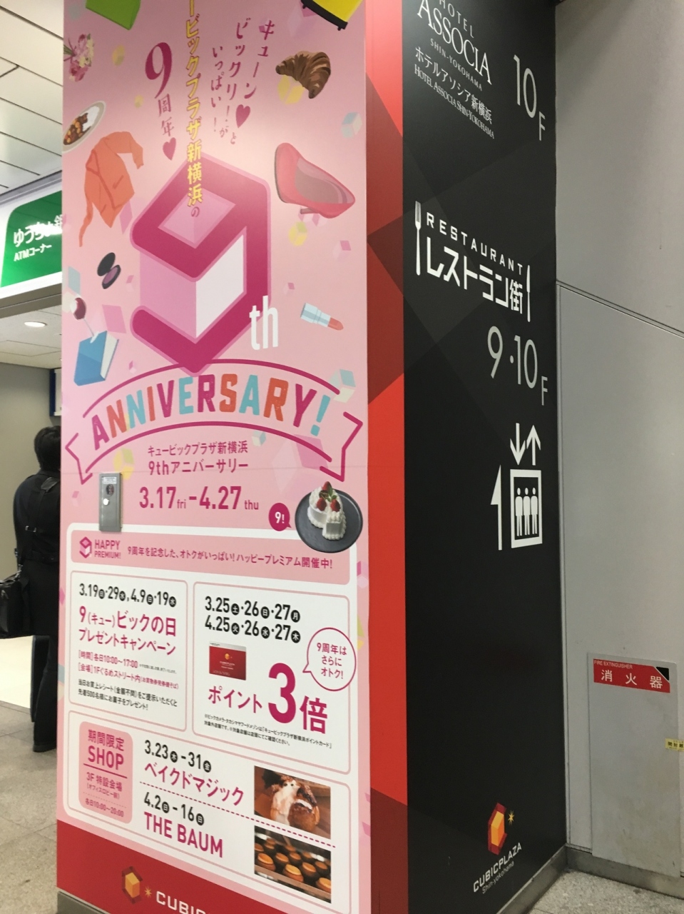 新横浜駅の改札からすぐエスカレーターを上がったところにある駅ビルです。9周年のキャンペーンをやっていて期間中の9がつく日にはレシートを出すと先着でお菓子をプレゼントしてくれるキャンペーンを行っていました。催事のバウムが気になったのでまた来ようと思います。