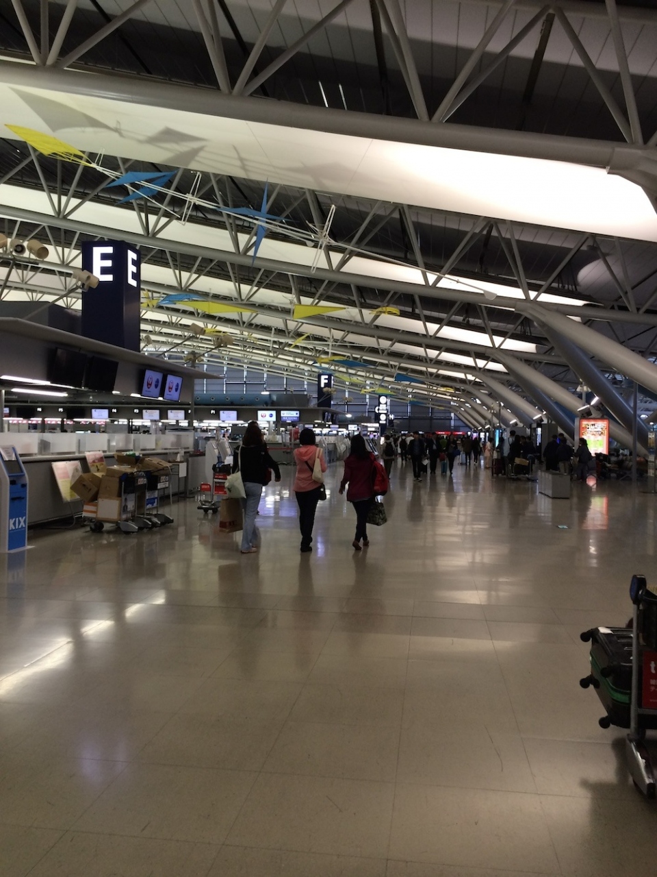 関西地区の大型空港としても機能していますが、国際線は圧倒的に中韓路線主導。成田や羽田でもみたことがないような地名がボードに出てきているのをみるとすごいなぁと思います。国際線のターミナルは案外狭いのですが、搭乗までは結構歩きます。保安検査後はあまりお店もないので、おみやげなどはぜひ保安検査前に確保しましょう。