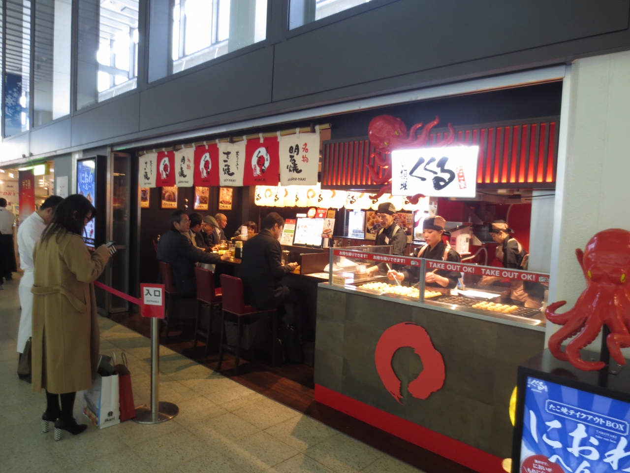 施設改修に伴い、2階のたこぼんが閉店してしまって、意気消沈としていたら、こんなところにたこ焼き店がありました。場所はANA側の1階です。もちろん、その場で焼いていて、その隣には狭いながらもカウンター席があり、そのカウンターで食べられます。明石焼きもありましたが、やはり普通のたこ焼きを。熱々ふっくらでとても美味しかったです。