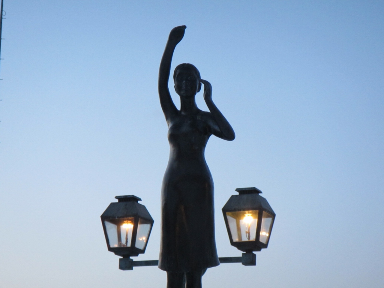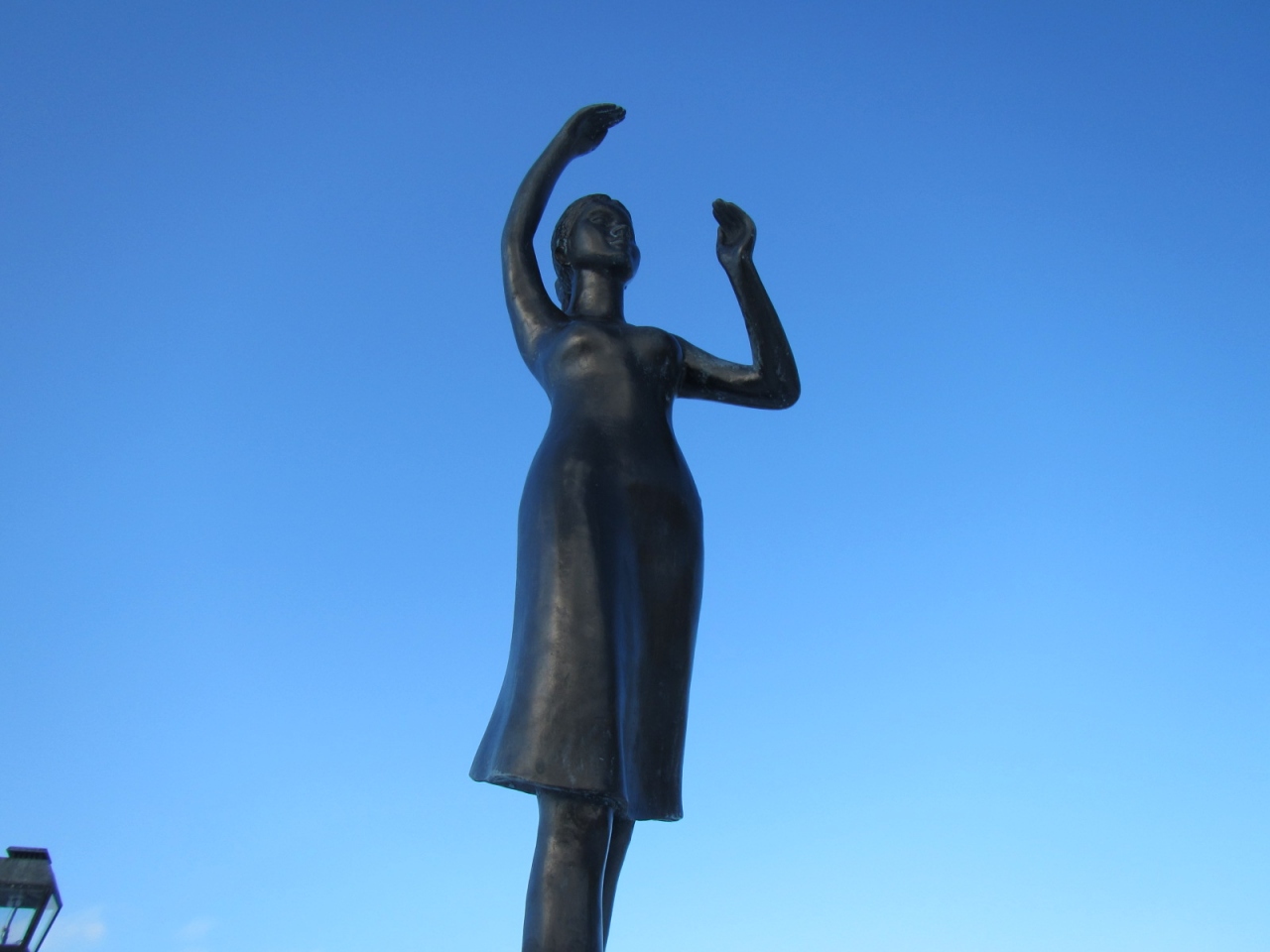 さっぱりとした印象の像で、ひなびた雰囲気の北運河の風景の良いアクセントとなっています。