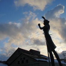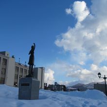 小樽運河の北運河方面にある北浜橋のたもとに立つ像です。