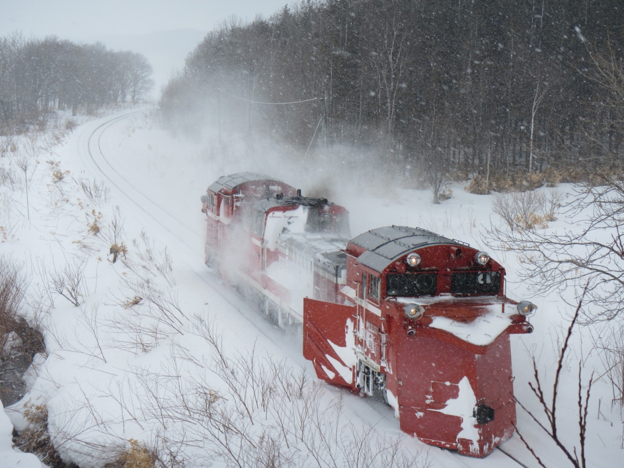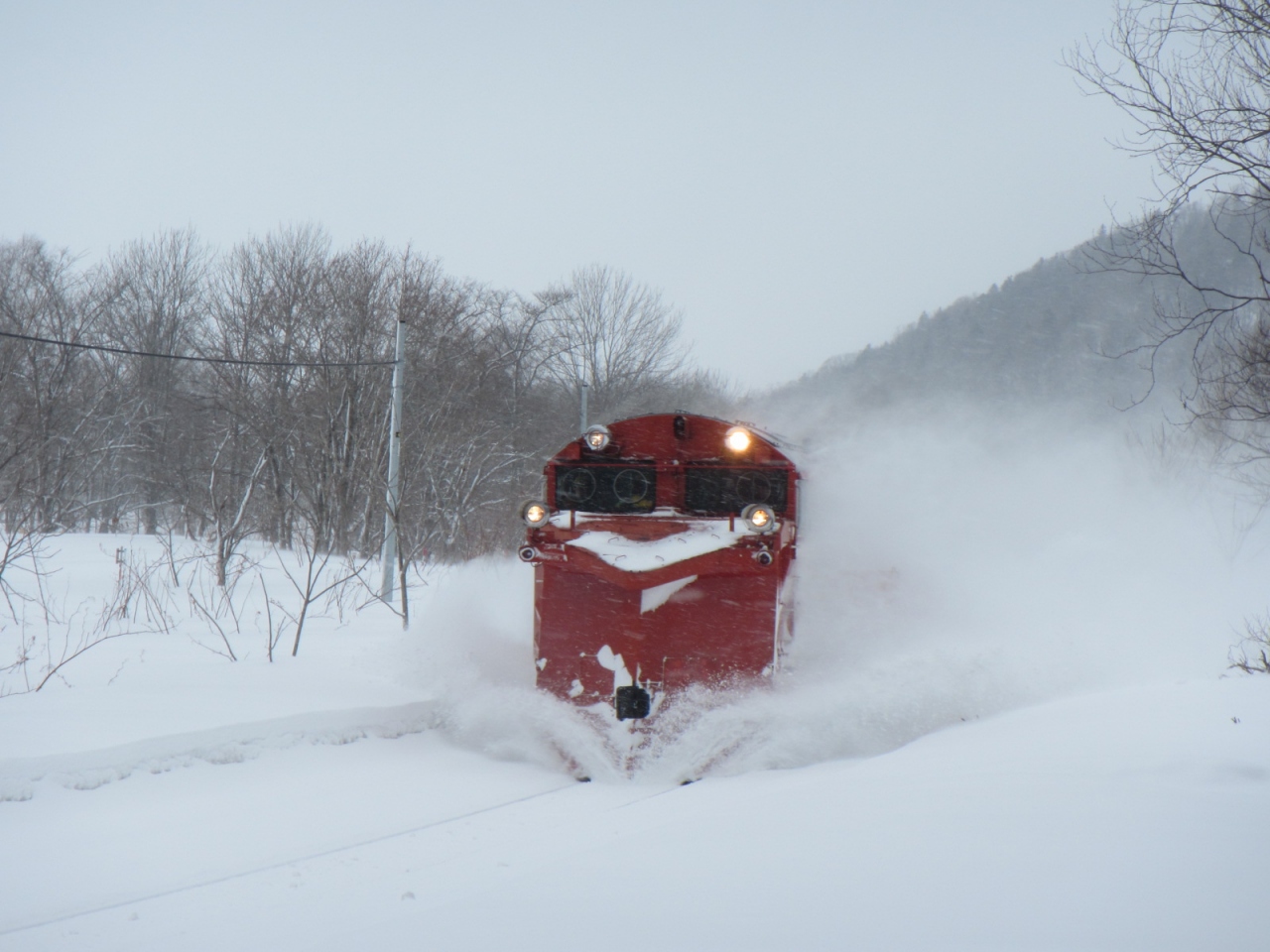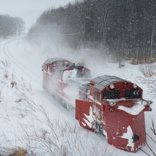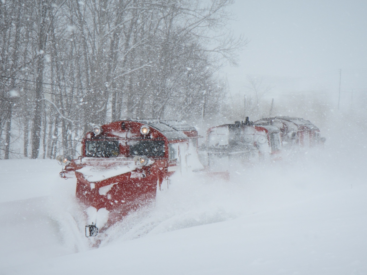 冬は排雪列車こと、雪かき車がほぼ定時のダイヤで定期運行されています。