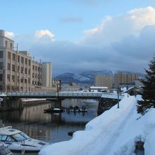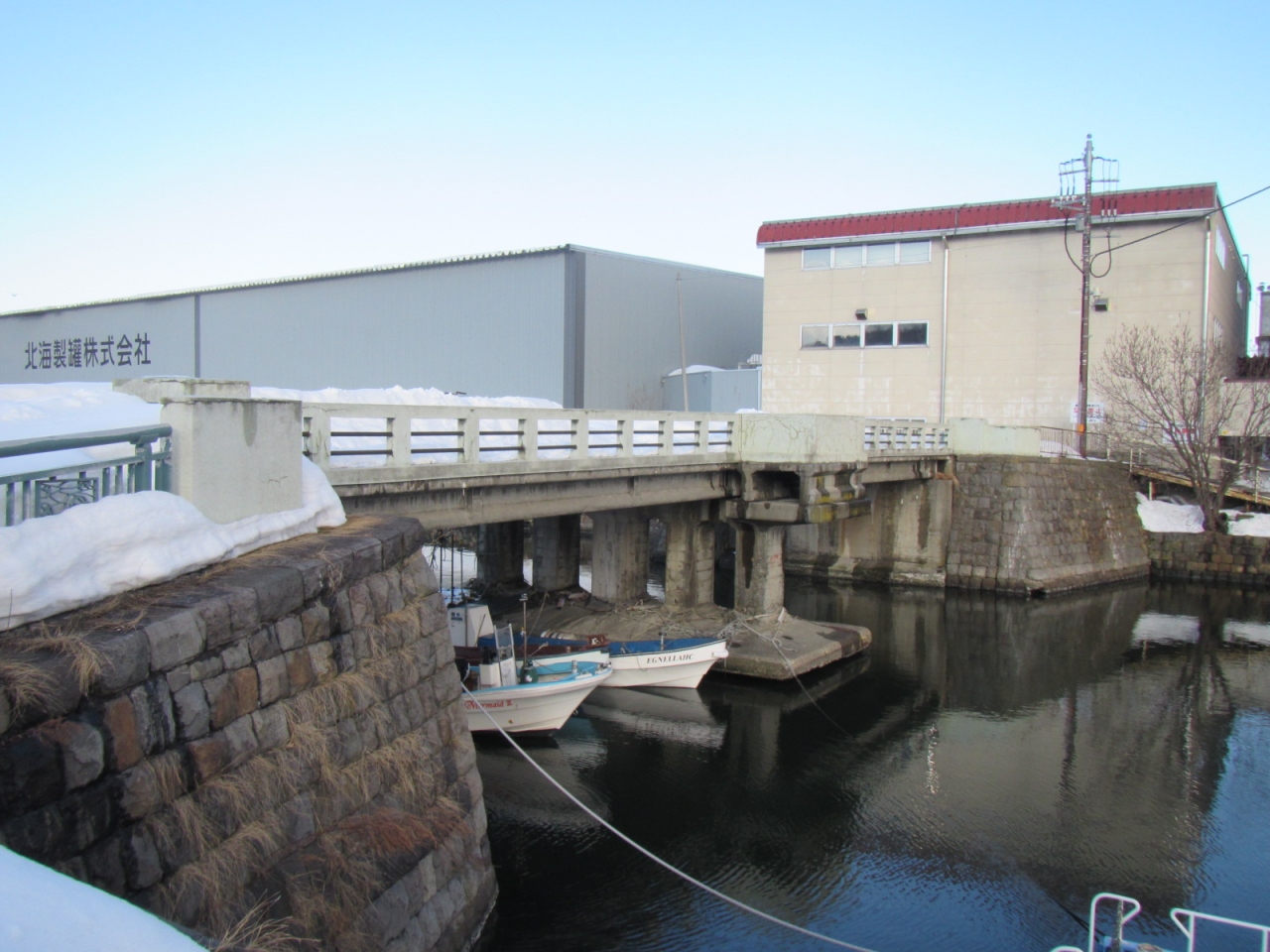 小樽運河の北運河方面、運河もあともう少しで終わろうかというところに架かる橋です。