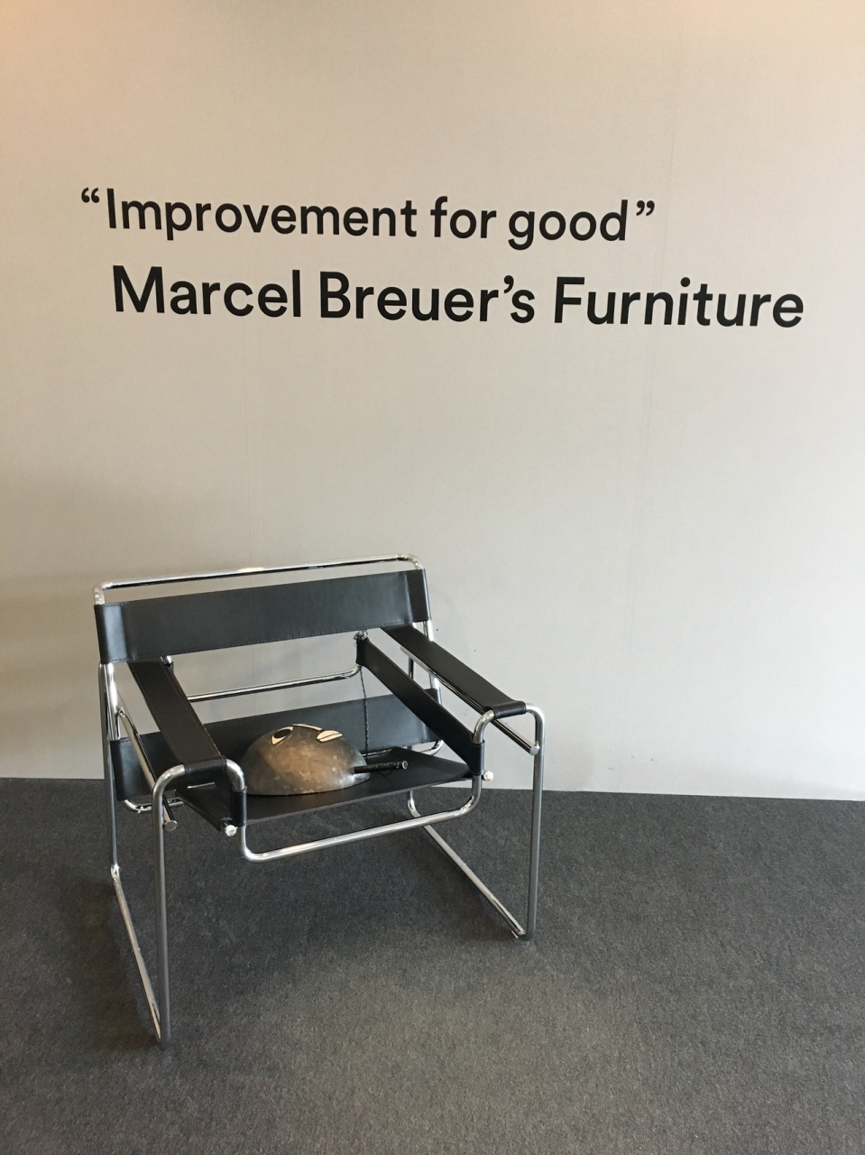バウハウスのメンバーとして有名なマルセル・ブロイヤーの家具に焦点を当てた展覧会を見に行きました。比較的小さいスペースのギャラリー4での開催のため、入場料も430円とお手頃で他のスペースの所蔵作品展も閲覧が可能。ワシリーチェアの複数のモデルを展示したり、他の家具も含めて展示されていました。建築家の芦原義信氏と親交が厚く、ブロイヤーとの手紙や電報の展示もあり、心温まるものでした。入口にはワシリーチェアと手作り(美術館の方が作られたのでしょうか?)マスクが置いてあり、自由にかぶって撮影できる楽しい計らいもありました。