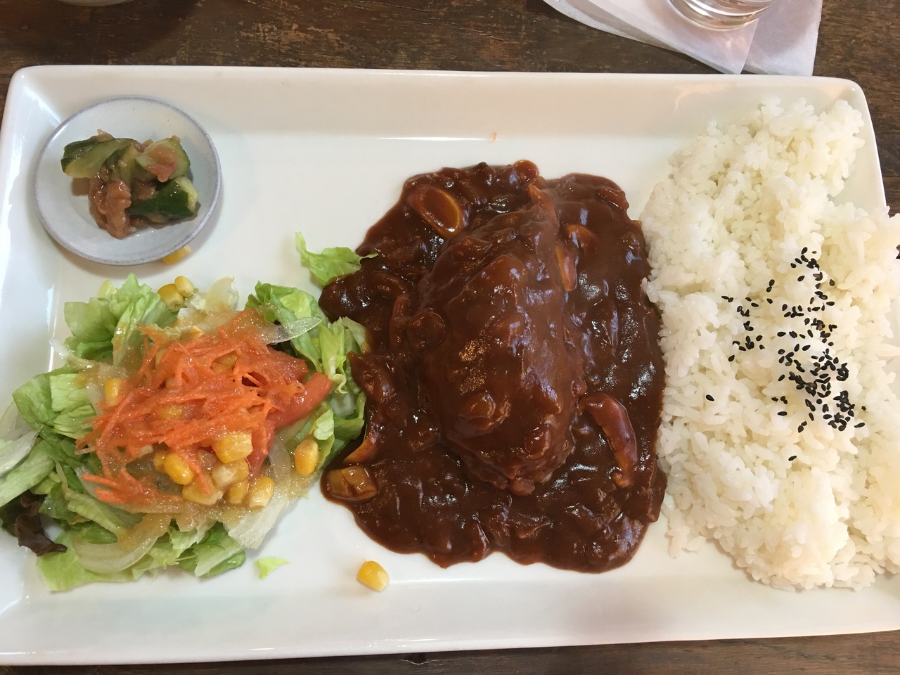 ランチメニューも魅力的で迷った末にハンバーグをチョイス。