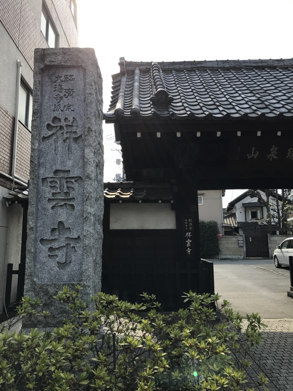 広尾の商店街を抜けると祥雲寺が見えます。山号を瑞泉山と言います。黒田忠之の開基であります。寛永6年、1629年に麻布台いまの市平兵衛町に移り号を改めて瑞泉山祥雲寺と称したそうです。寛永8年にいまの地に移転しました。