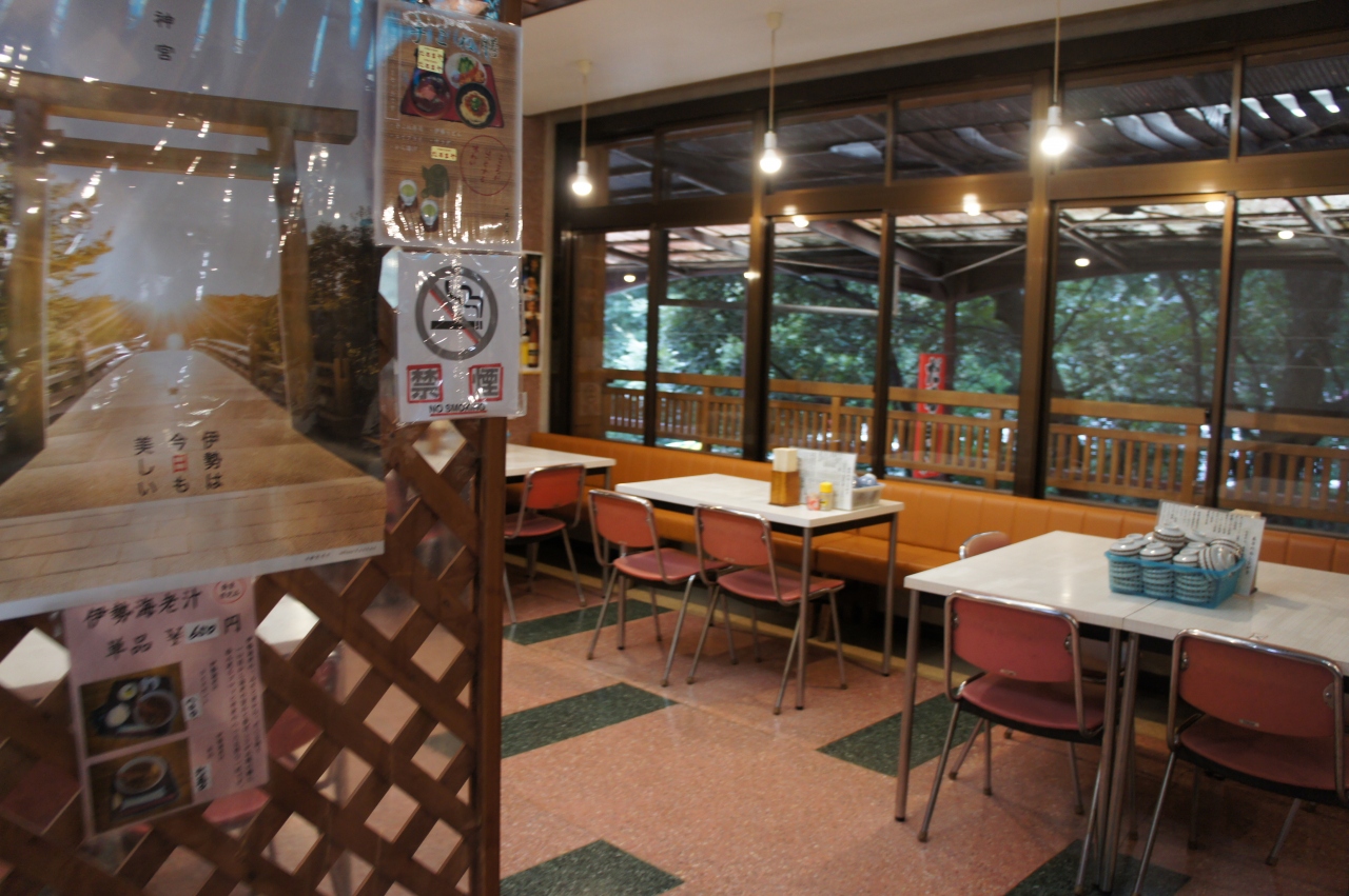伊勢神宮で参拝を済ませた後で、バスの駐車場横にある「おかげ横町」に立ち寄りました。参道脇から歩道の両側に建ち並ぶ建物には土産店や食事をする店がいっぱいです。土産店では試食するところもけっこうあり、じっくり吟味して買い物が楽しめます。店員の方は明るく対応もいいです。おかげ横丁の入り口すぐ左にある「だるまや」さんで昼食をとりました。食事は二階で先にチケットを自販機で買います。手こね膳を注文。伊勢うどんと手こね寿司のセットは味がよくてボリュームもありお腹いっぱいになるまで食べられました。横町の中程にある喫茶店「カップジュビー」でコーヒーを飲みました。コクがあり香りもしっかりとした美味しいコーヒーでした。店内はソウルミュージックが流れていて、LPレコードが店内にたくさんありました。店主が好きで店内に置いているとか。カウンターでは喫煙可、テーブル席では禁煙、いわゆる分煙になっています。それほどたばこ臭は気にならなかったです。