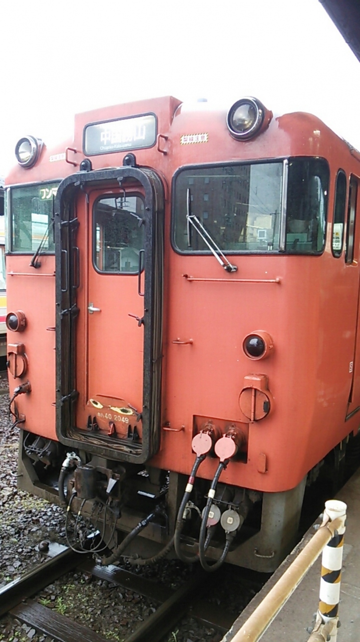 津山14時38分発中国勝山行きはキハ47系が使用されています