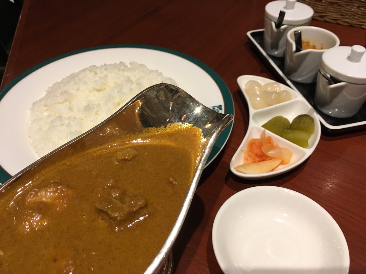 母が注文したのは定番中の定番、中村屋純印度式カリー。母曰く「最初はそんなに辛くないかなと思ってたけど、食べていくうちに辛さが迫ってくる感じ。メニューに書いてあった通り『恋と革命の味』」