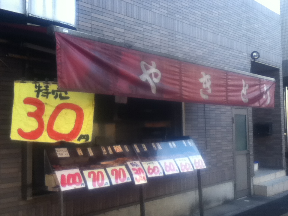 北千住駅北西の比較的広い道路沿いにある持ち帰り専門の焼き鳥屋さん。散策の途中寄った。店頭には汚れな赤色のシートが張られている。特売30円の紙もある。その下にはケースが並んでいて、もも、タン、かしら、とりレバ、カツ、ナンコツ等焼鳥、やきとんがずらりと並んでいる。30円のもも、とりレバ等数本を買って近くで食べたが、まぁまぁの味である。数10本買って帰る地元らしい人もいた。ボリュームは小さいものの、値段は総じて安く気軽にその場で焼鳥、焼きトンを食べるか、自宅に持ち帰って食べるにはいいかもしれない。