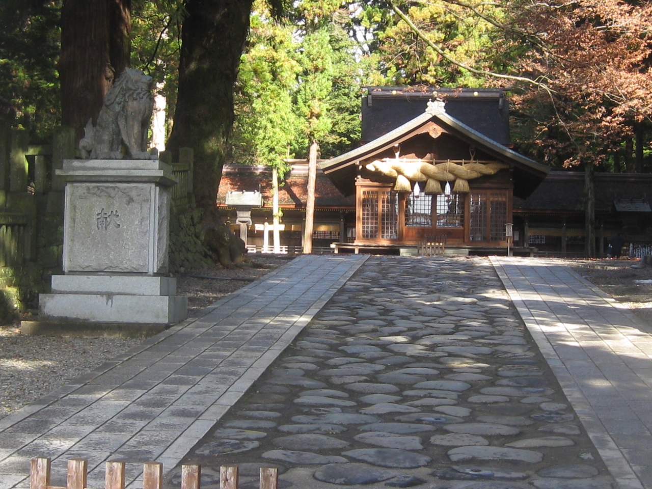 諏訪大社下社秋宮を訪ねて次に中仙道を歩いて行きました、所要時間は20分程で、道の両側は旧街道そのもので歴史を感じました。春宮に着くと御影石の大鳥居が迎えてくれるようです。境内は神楽殿、拝殿、宝殿、ご神木と秋宮とほぼ同じ配置ですが大きさが違います。こちらの方が静かな雰囲気です。