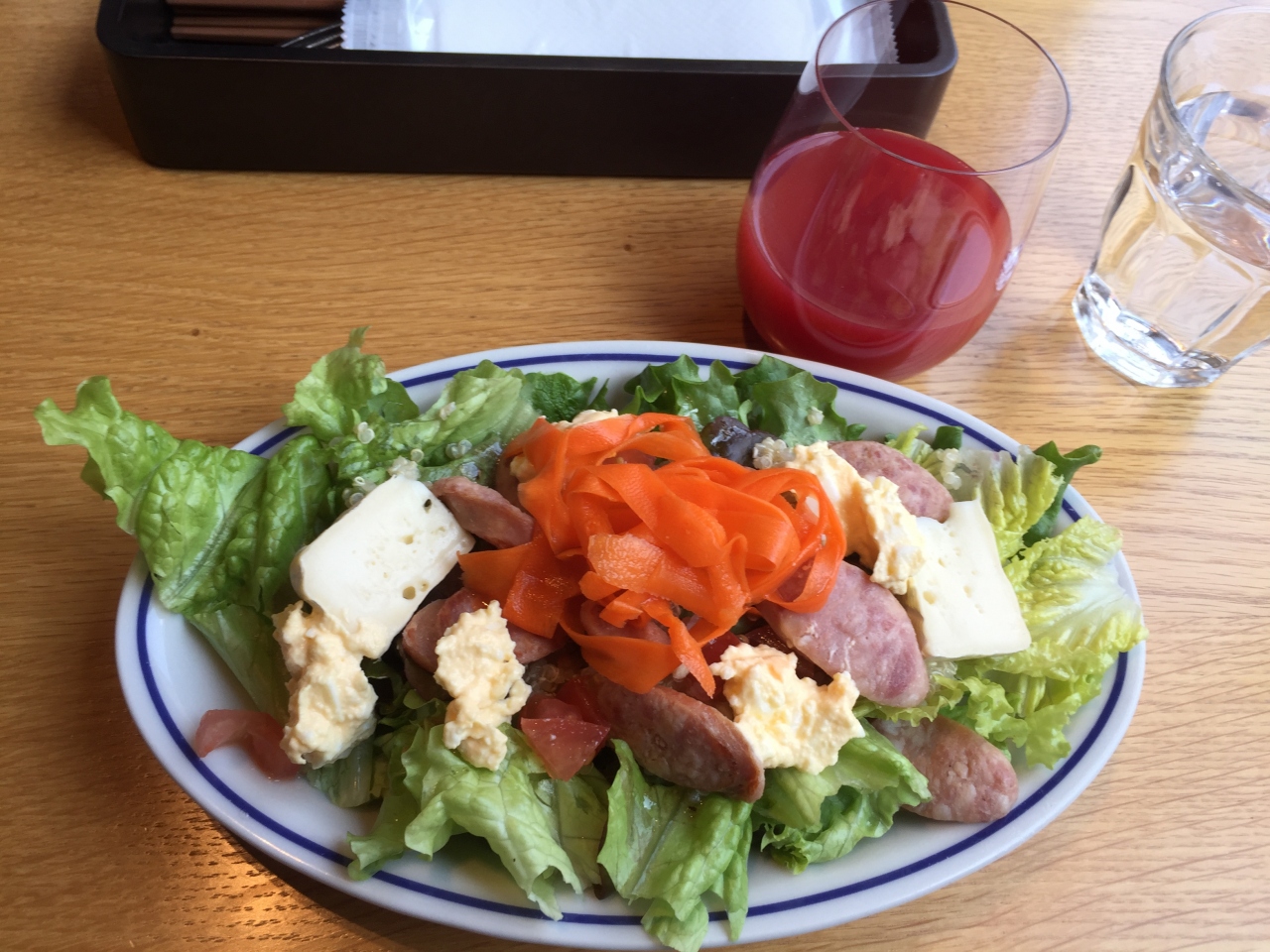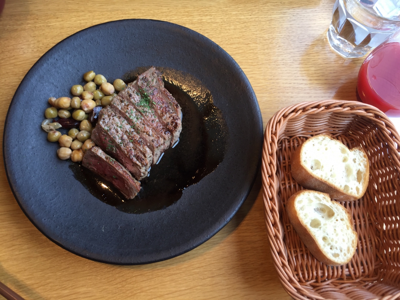 値段からして何の期待もしていなかったけれど、まずたっぷり野菜のサラダが美味しい。そしてステーキもいい感じの焼き具合で柔らかく、ソースもとても美味しい。とてもお得感のあるランチでした。