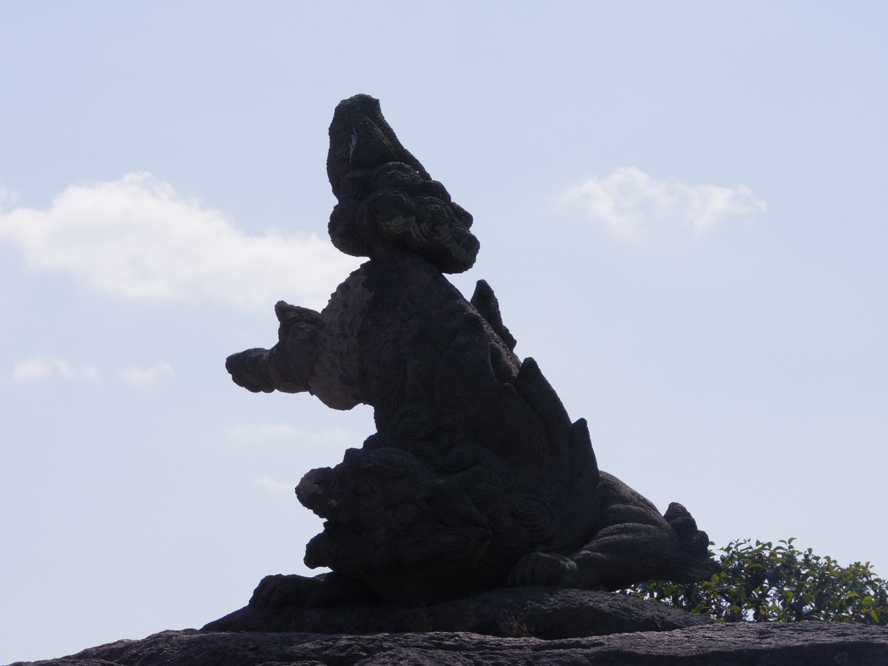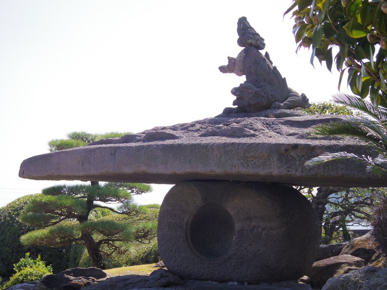 火袋は加工した石のようですが、台石と笠石は自然石が用いられていて、野趣に富んだ豪快な灯籠に、さらに獅子が乗っているのには、さすがに薩摩の殿様の考えることはスケールが大きいです。