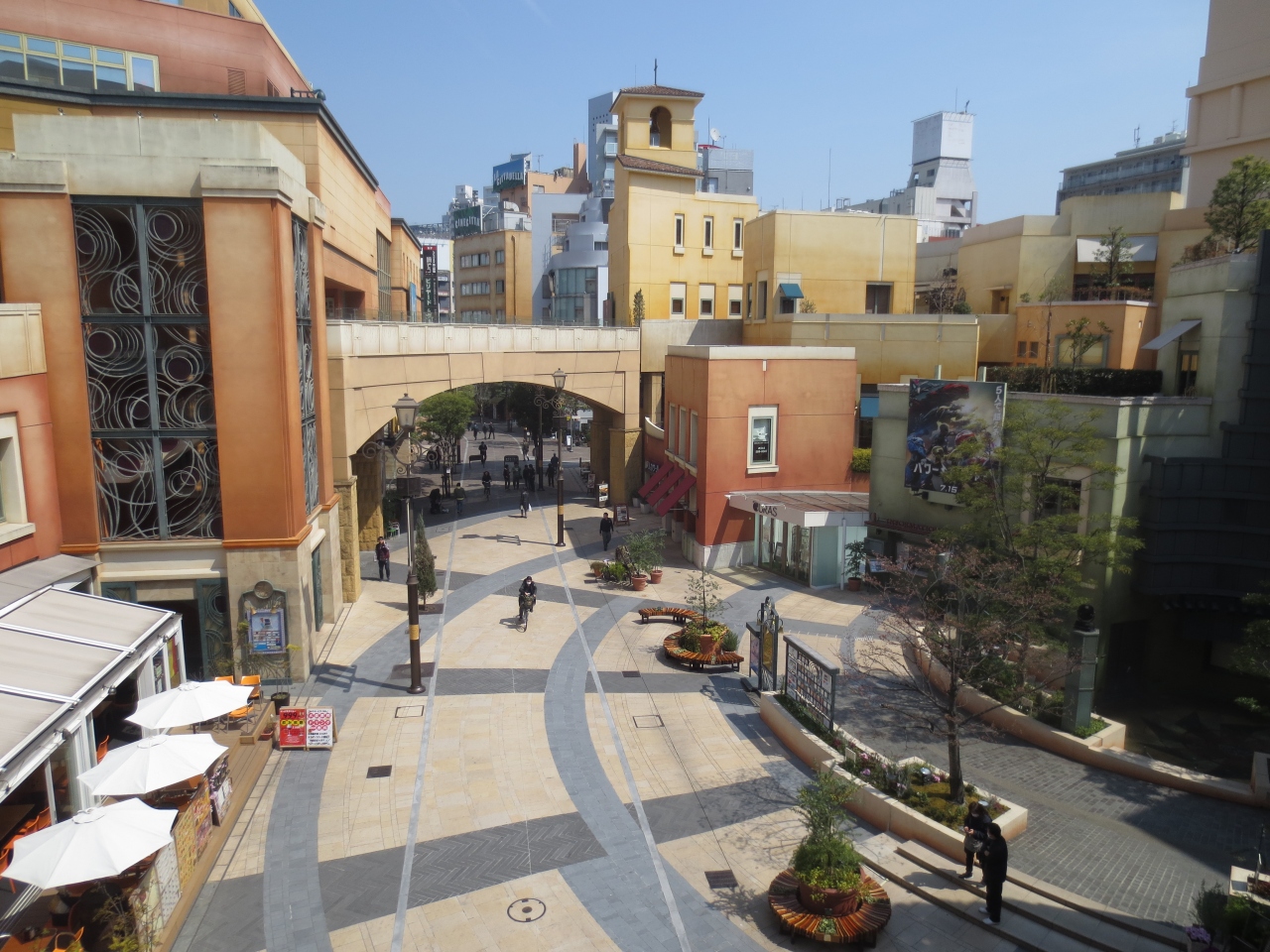 川崎にあって、そこだけ外国風なチネチッタです。小さなエリアですが、街並みが完全にそんな感じでした。映画館が入っているメインの建物には飲食店なんかも入っていて、屋外の通路にはオープンエリアの席が、完全に南欧風です。1階の噴水で時間限定の噴水ショーをやっていましたが、事前予告の放送程のものではありませんでした。