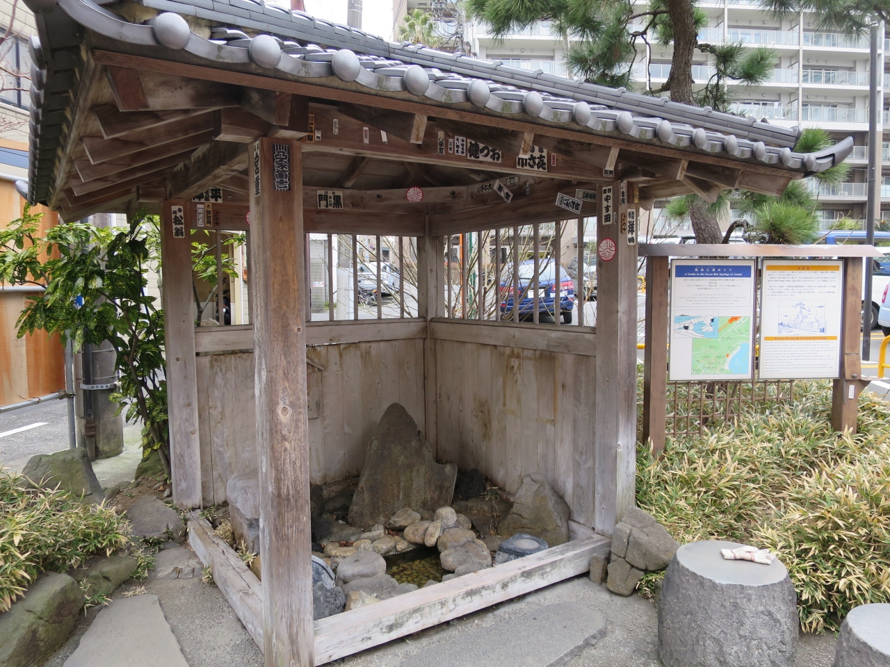 熱海銀座にある熱海七湯の一つに数えられる源泉です。熱海銀座近くの国道135号線沿いにあり、七湯の中で唯一、屋根があります。その昔、この辺りが河原で主に農民、漁師が入浴したお湯だそうです。岩に囲まれたお湯は佐治郎の湯と同じく、ぬるいお湯でした。七湯は海に近い方が温いのかもしれませんね。