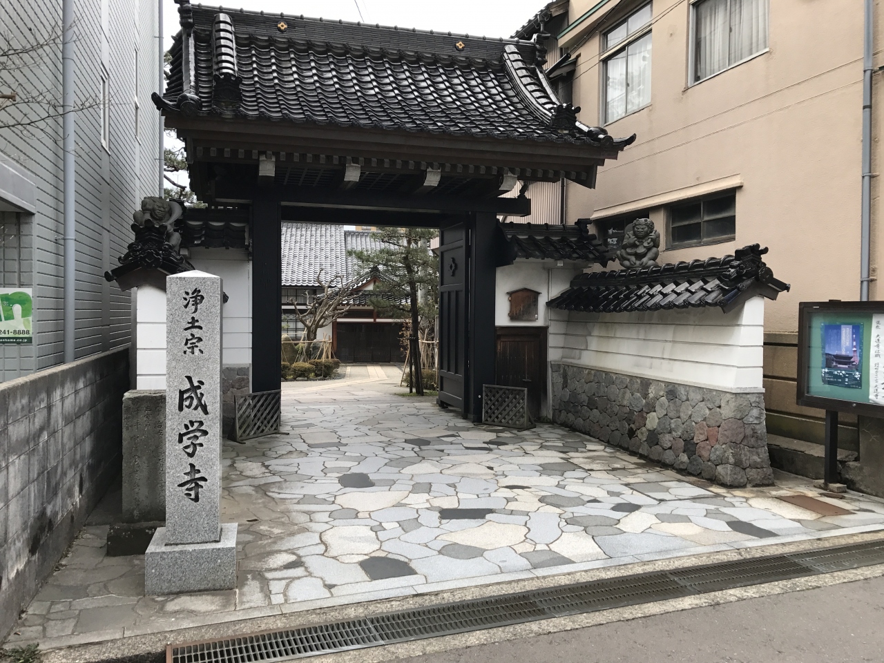入口はきれいな石畳に門にと、整備されているのですが、本堂は古めかしい感じでした。どうやら江戸時代の創建当時のままの建物らしく、屋根や壁など風情がありました。見応えありです。他にも松尾芭蕉の句碑もあり、金沢の歴史が感じられる寺です。