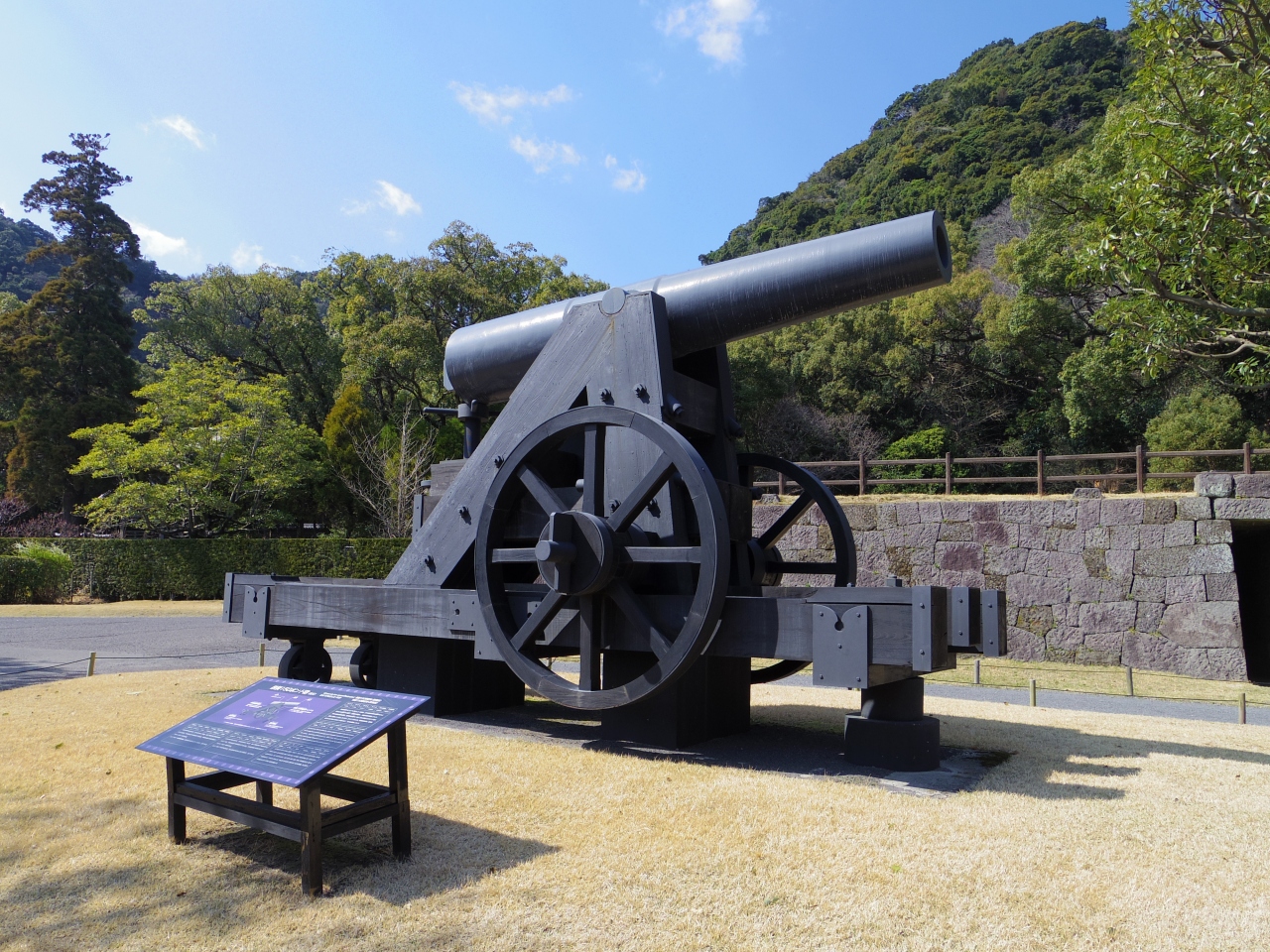 庭園に入ってすぐのところに、大砲が設置してあるのにはさすがに驚かされますが、島津斉彬の集成館事業の歴史を知れば納得できます。