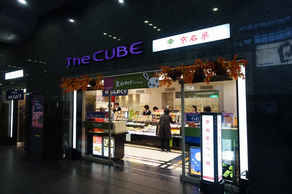 おみやげに阿闍梨餅を買いました。京都駅の駅ビル1階、The CUBE「京名菓」の一画に満月の販売ブースがありました。ここはJRの中央改札口から近いです。阿闍梨餅はここ以外にも京都駅構内やデパートなどでも売っています。