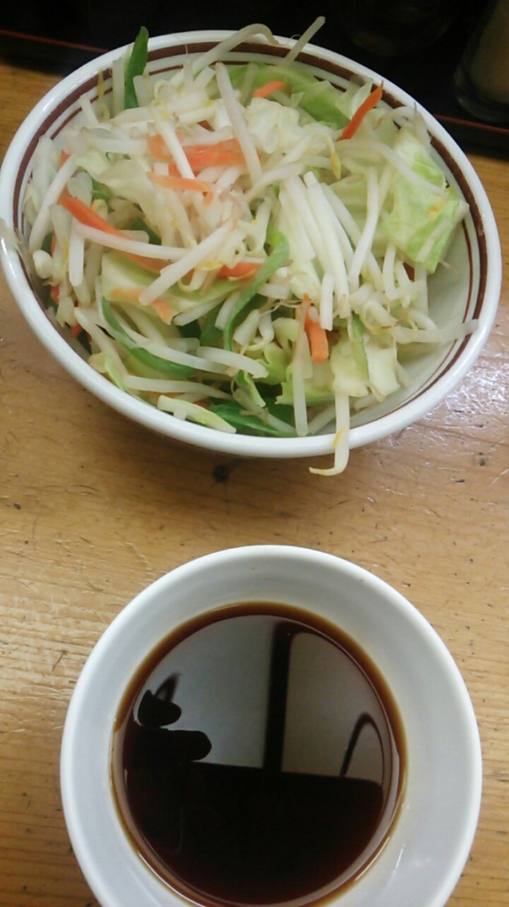 このゆで野菜、キャベツ・もやし・人参等野菜炒めでお馴染みの具が使用され、量は多めでした。