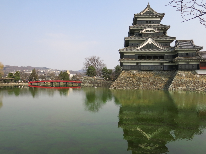 お堀越しの姿が美しく、特に冬場の晴天の日は雪を抱いたアルプスが背景、という贅沢な景観を拝むことができます。