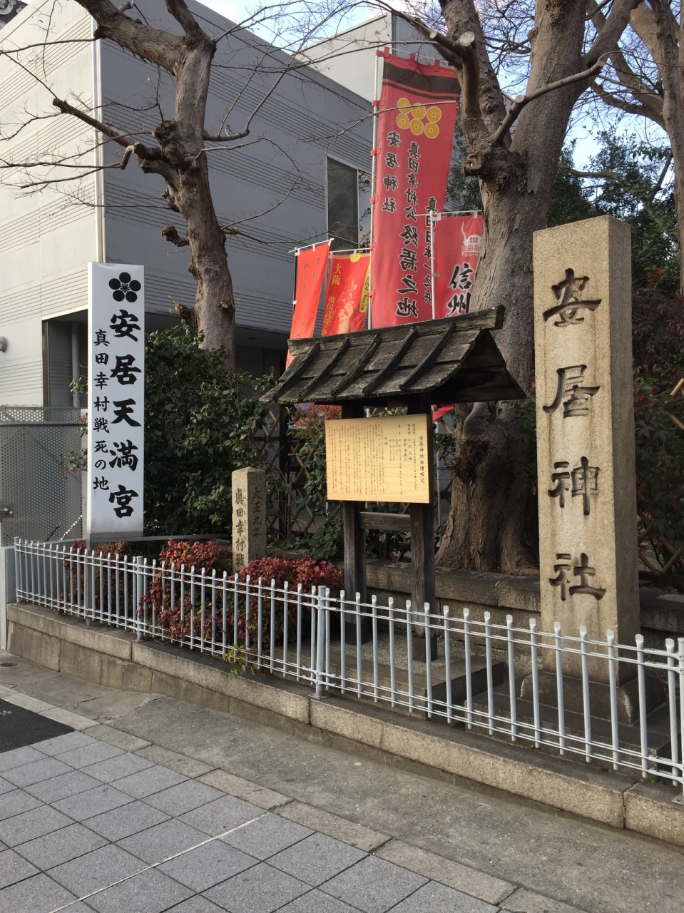 大坂夏の陣、真田信繁終焉の地、と伝えられる神社。真田信繁像があります。