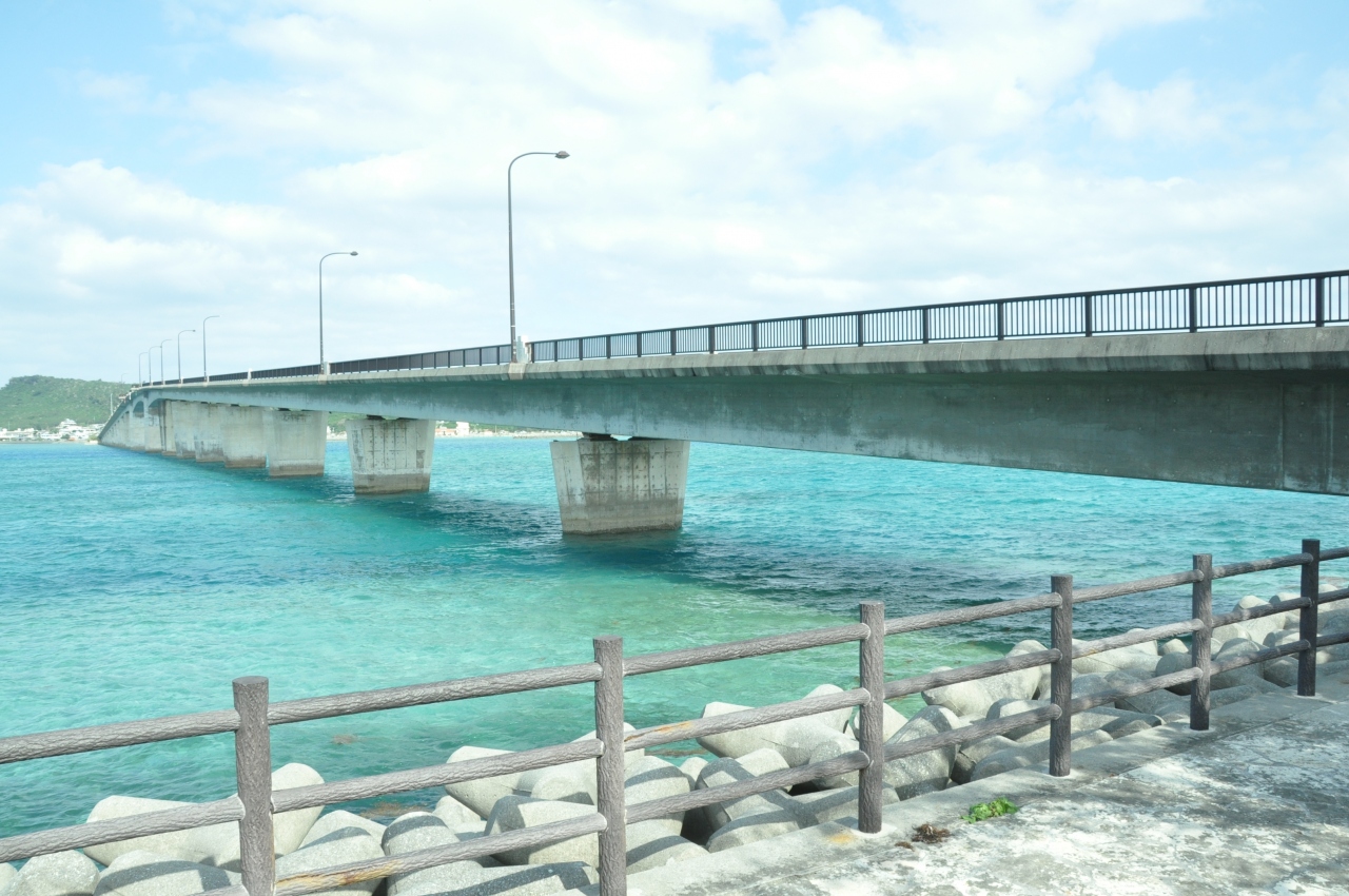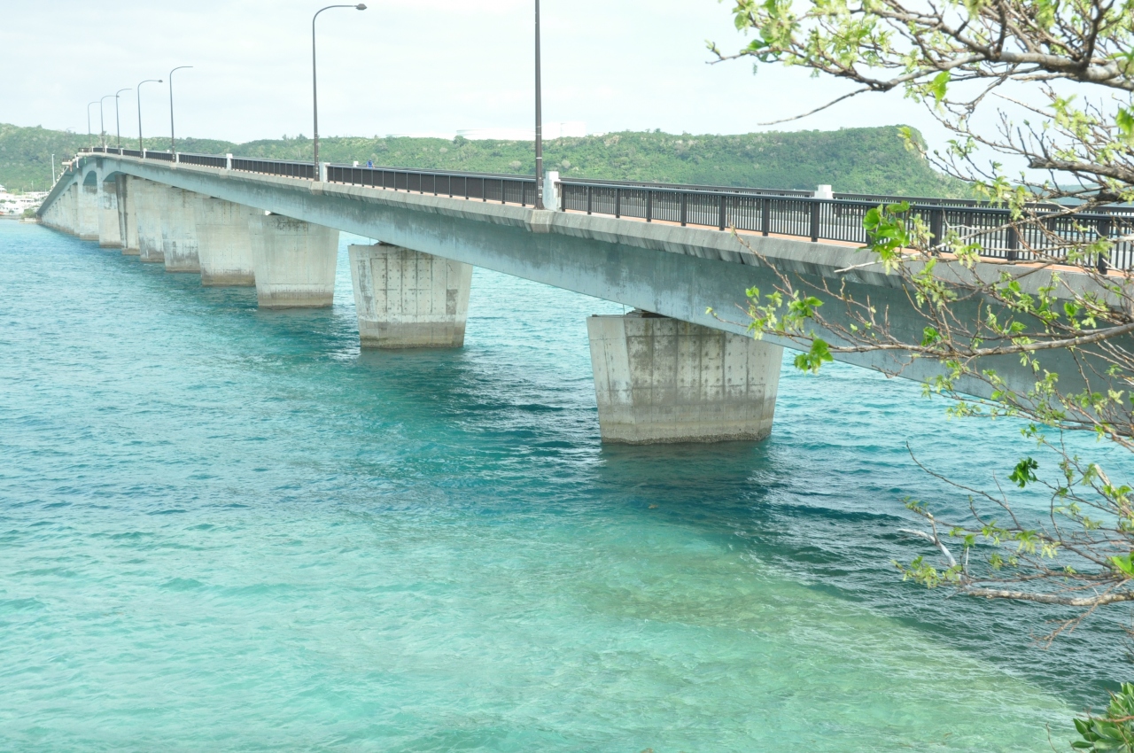 海中道路を渡った後は道なりに進んで行ったが、どこに何があるのかわからなかったので、少し戻るような事になったが、浜比嘉大橋を渡って浜比嘉島に行ってみた。浜比嘉大橋を渡るとT字路になり、右折して駐車場に入るとガラ空きだった。海の方に向かって少し歩くと、海と浜比嘉大橋が見えてきた。展望台があったので昇ってみると美しい海と浜比嘉大橋を眺めることができた。観光客はほとんどおらず、ここは穴場かもしれない。