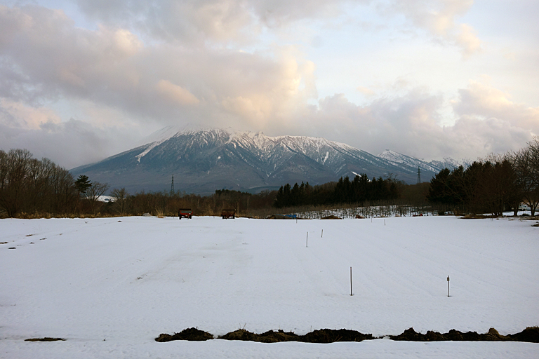 スキーで訪れた八幡平のホテルが正面に岩手山を見られるところでして。富士山から上半分抉り取ったような荒々しいかたちをしています。よほど激しい噴火があったものかと思いますが、カッコいい山だなあと僕も妻も見惚れてしまいました。