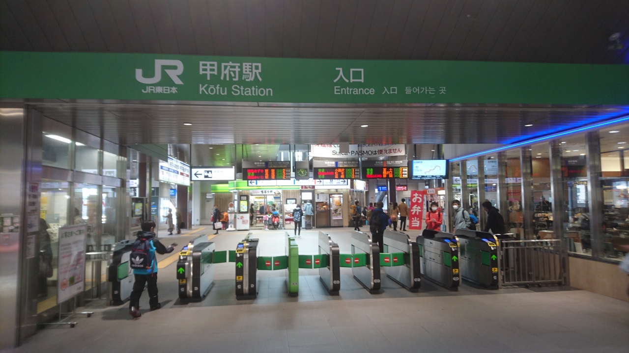 甲府駅に来たときに甲府駅南口は現在改良工事中でした。そのため、大回りして歩かねばならなかったです。また、南口には武田信玄公の像がありました。ただ、南口は工事中なので近くまで行くことが出来ませんでした。駅構内はベーカリーやカフェなどがあり、山梨のお土産を販売しているお店もありました。