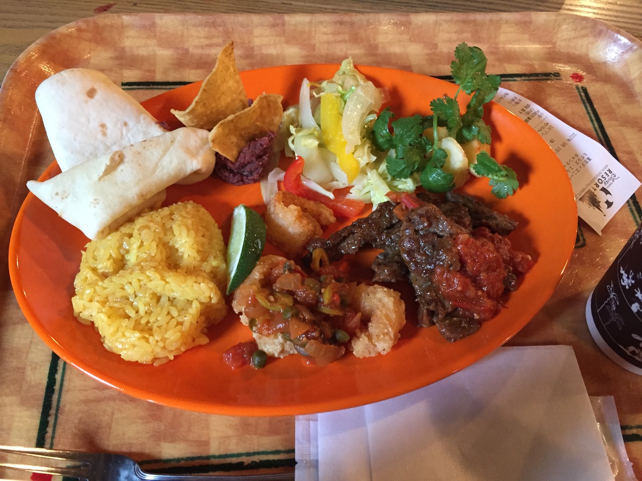 ロストリバーデルタにあるメキシカンのお店です。お昼ご飯にこちらを利用しました。パークの奥地(?)にあるせいか、お昼のピーク少し前だったからかとても空いていました。辛いサルサはプレートに乗っているだけなので自分で調節可能です。