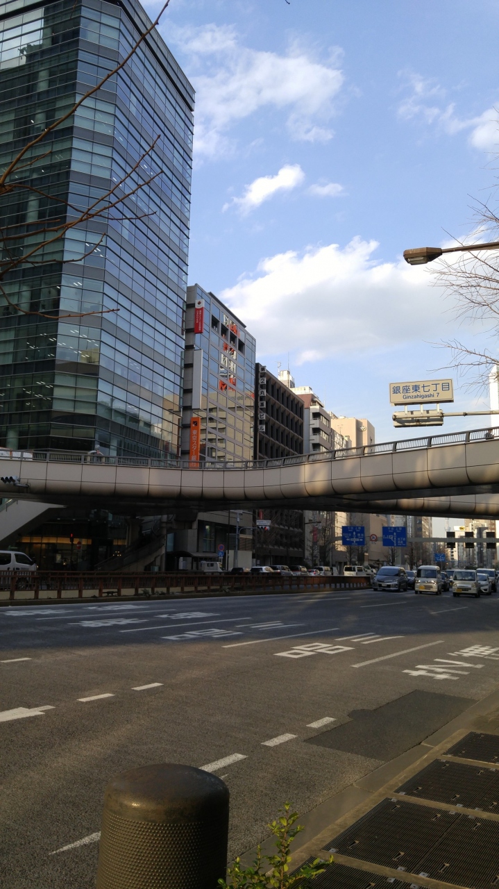銀座7丁目の昭和通りに架かる橋です。車優先のために作った感じですが、エスカレーターもあるので、利用しやすいです。東銀座の駅近くまでいかずに済むので便利です。最近は補修工事をよくしているので、ちょっと不便です。