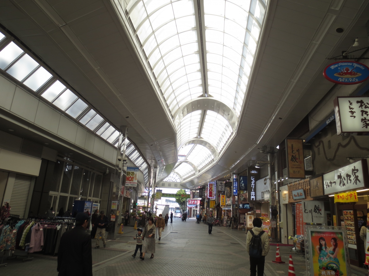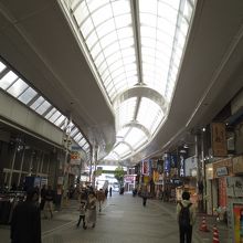 川崎駅東口にあるアーケード商店街です。川崎には商店街がいくつかありますが、ここはその内のひとつ。アーケードの天井にステンドグラスが埋め込まれていますが、歯抜け状態では、数も少なめでした。明るさを取り入れている為なのか、そうでないのかわかりませんが、そのようになってました。商店街はけっこう賑わっていて、お店の数も多くて、歩くだけでも楽しかったです。